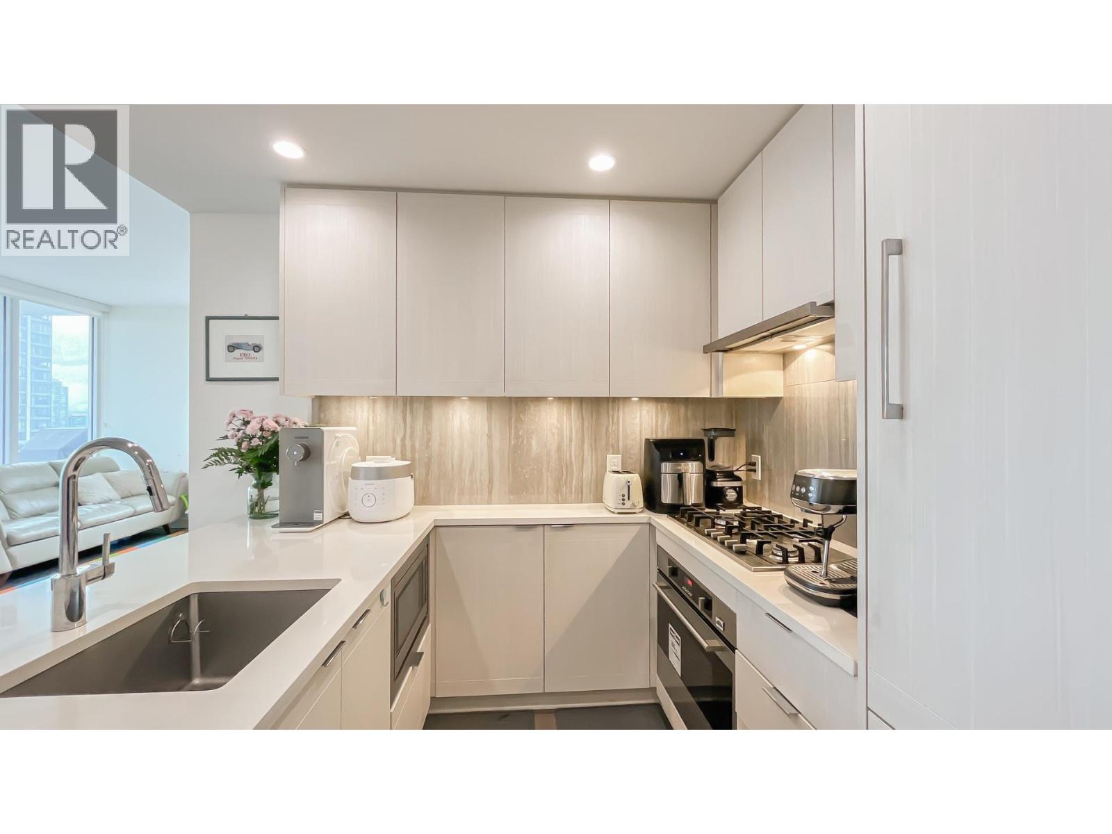 Amazing CORNER unit at Imperial by AMACON located in the vibrant Metrotown area. Functional layout with 2 x separated bedrooms + 2 full bath. Open concept kitchen with quartz countertop and full size integrated appliances including gas cooktop. Bright living and dinning area with 9' ceilings. This home also features air-conditioning, wide-plank laminate flooring throughout, and wraparound balcony with beautiful city view. Resort-style amenities include fitness centre, social lounge, music/yoga room, concierge, and guest suite. Mins walk to Metrotown shopping centre, skytrain station, bus stops, restaurants, Bonsor Recreation Complex, and more. (id:62205)